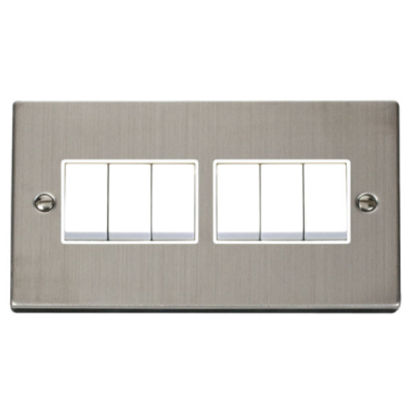 Click VPSS105WH 6G 2Way Plate Switch - Stainless Steel White Insert