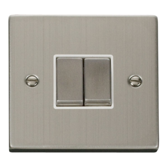 Click VPSS412WH 2G 2Way 10AX Plate Switch - Stainless Steel White Insert