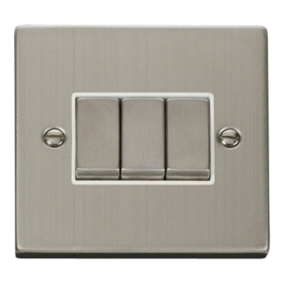 Click VPSS413WH 3G 2Way 10AX Plate Switch - Stainless Steel White Insert