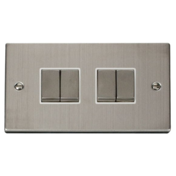 Click VPSS414WH 4G 2Way 10AX Plate Switch - Stainless Steel White Insert