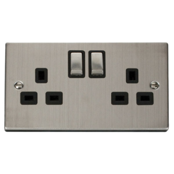 Click VPSS536BK 2G DP Switched Socket - Stainless Steel Black Insert
