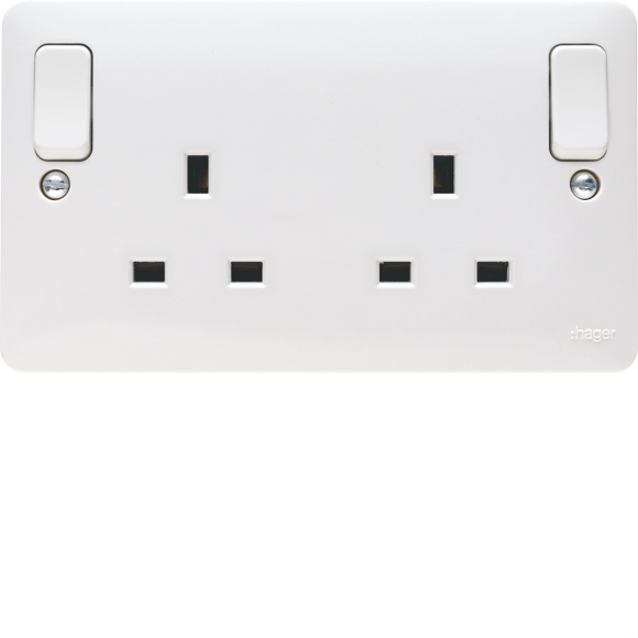 Hager Sollysta WMSS82O 13A 2G DP Switched Outer Socket - White Moulded